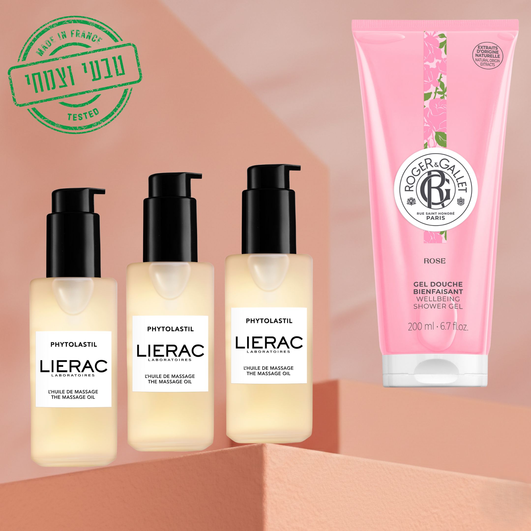 חבילת 3 יח' שמן עיסוי+ ג'ל רחצה בניחוח רוז רומנטי